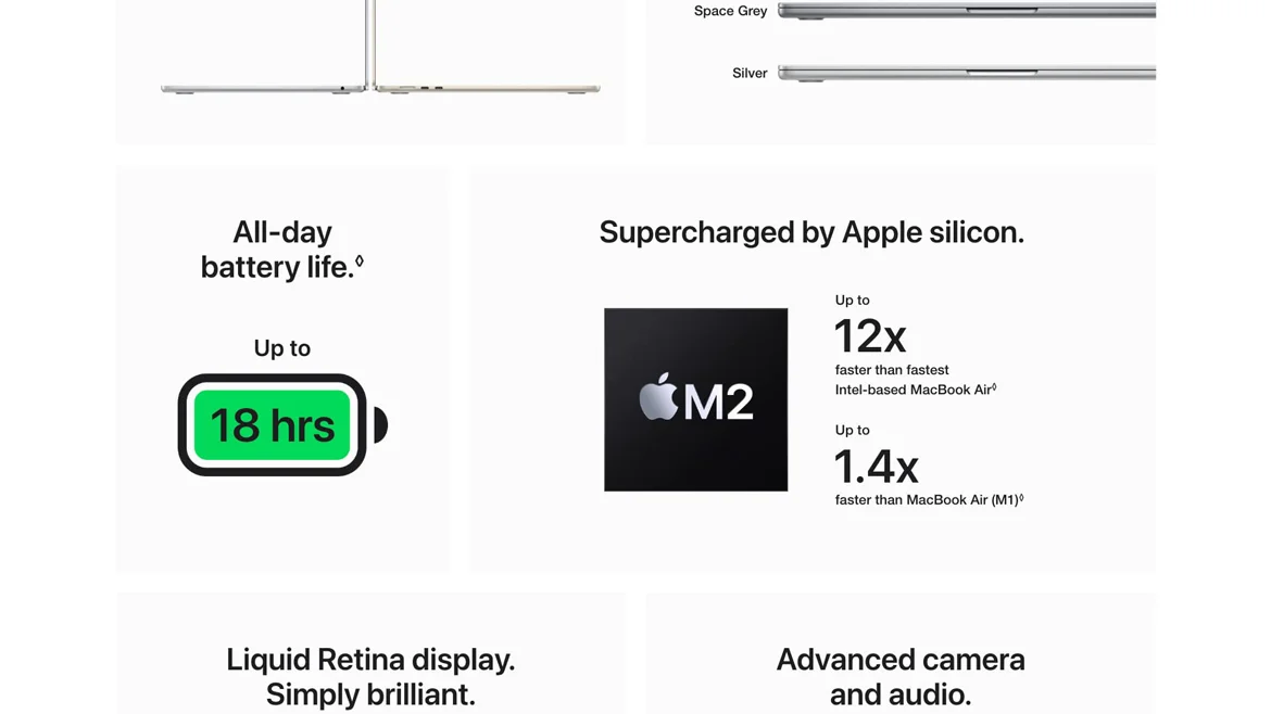 The M2 chip brings more speed to everything you do — whether you’re editing a video for class, collaborating on a business plan, or streaming a show while you shop online. And with all-day battery life, you can leave the power adapter at home.