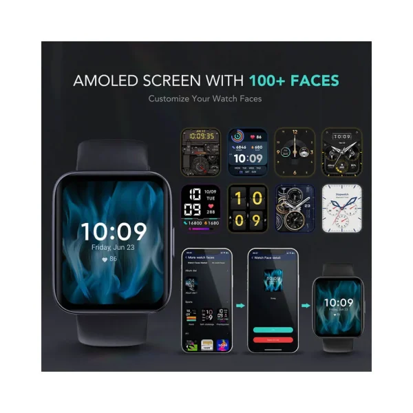 • The advanced high-performance sensors on the watch makes the fitness watch functional to give you real time insights into your heart rate, blood oxygen, stress, sleep.